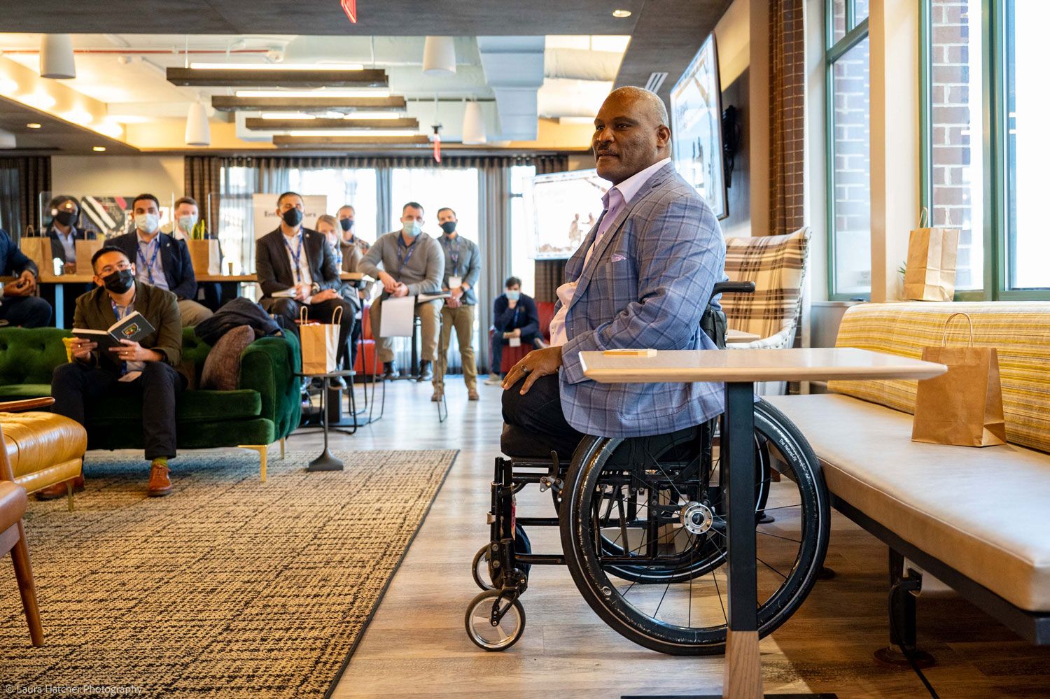 Natural light fills this welcoming space that makes an ideal layout for larger-scale corporate and work gatherings with a variety of seating arrangements to choose from and the best views of the surrounding area, complete with large wet bar, catering kitchen, and 360 Terrace. The conference room is equipped with the latest A/V technology, three large TVs that can be hidden with wooden barn doors, and an additional bar/catering nook—amenities that will keep your day moving smoothly no matter what’s on the agenda!